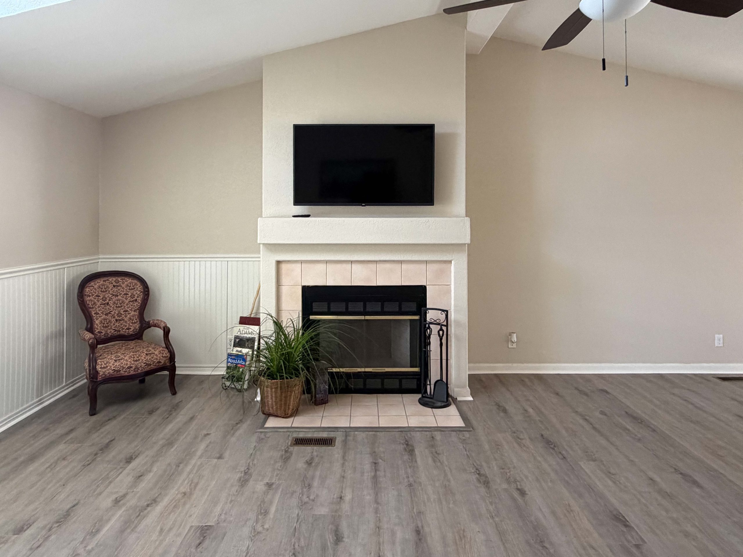 Beautiful home with a cabin ambiance to it without the snow. The courtyard area right out front welcomes you to come sit and relax, enjoy the openness and a view of the mountains. The custom ramp leading to the front door makes it handicap accessible if needed. This home has a very open floor plan with 2 fireplaces, freshly painted interior, custom stain glass windows, Tiffany lights that remain with the home and a 12X25 room addition. The kitchen was completely remodeled with a raised bar area that can serve as a breakfast or dinner area. It also has a pass through so it makes it easy especially when you have guests. All 3 bedrooms have ample closet space and each has its own unique setting. The room addition features stain glass, dual pane windows & doors, capped ceiling, fireplace and has access to the covered patio and back courtyard area which is also fenced in. The Bon Air cooler provides ample cooling which flows through the home on those hot days, if you don’t want to use the A/C you have options. The cabinets in the 2 car garage remain with the home so, if you need extra storage the cabinets are already there. Plantation on The Lake is a 55+ community with resort style living. If your looking for a great place to live with fabulous amenities and activities come and take a look, you might like what you see.