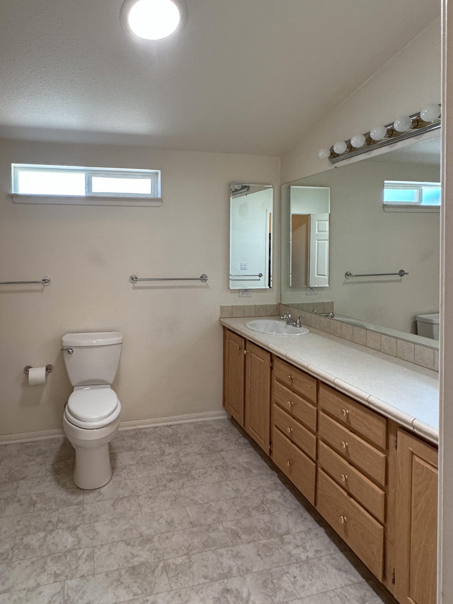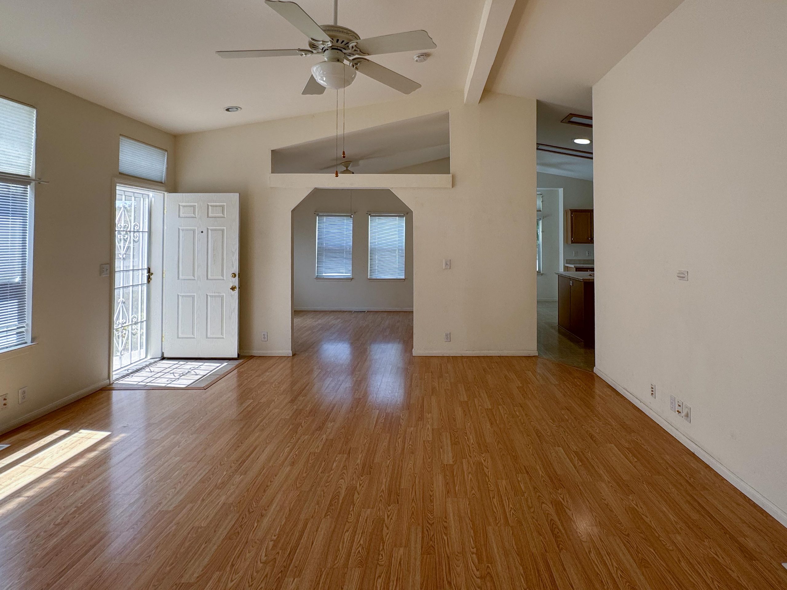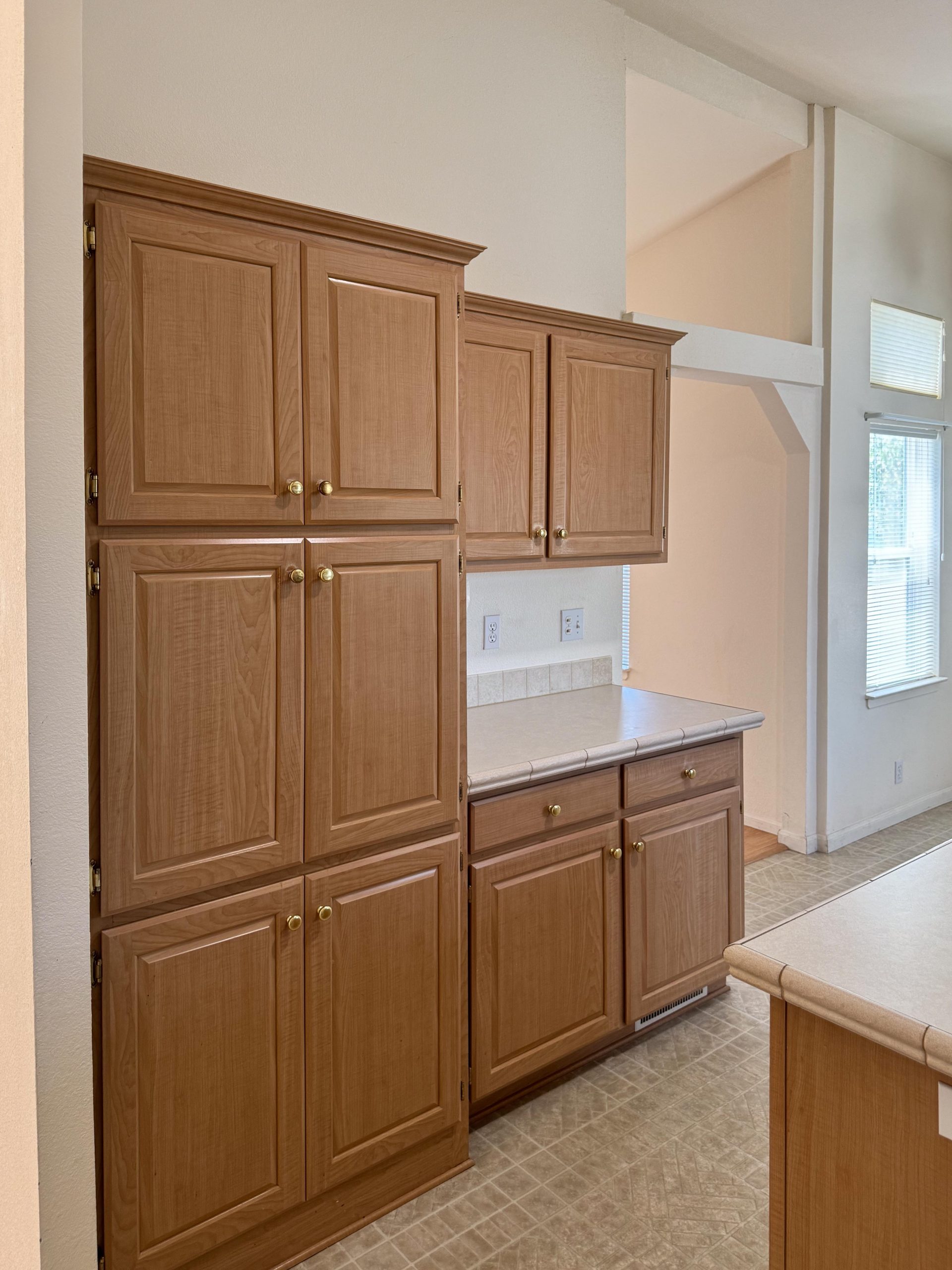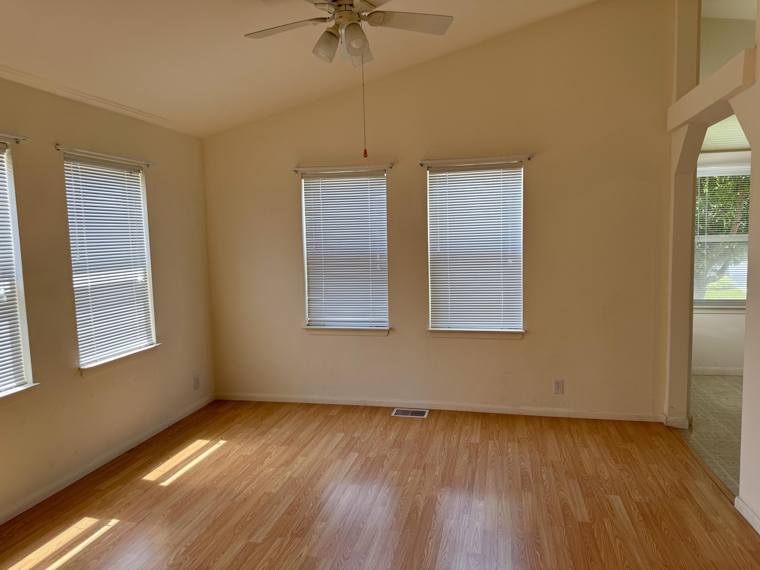 3 Bedrooms!!! One of the few and so well taken care of in our beautiful 55+ community. High ceilings, laminate flooring, new Linoleum in the bathrooms, private entrance/exit in one of the guest bedrooms perfect for company or maybe a care giver that leads right out to the covered patio. Take a look at the kitchen, armed with a trash compactor, new microwave, upgraded sink, abundance of cabinet space with pull outs and 2 pantry’s, 1 in the kitchen and 1 in the UT room. The UT room does have a sink with additional cabinets above the washer and dryer that leads directly out to the 2-car garage. The primary bath has double sinks with a 60” shower and its own linen closet, the primary bedroom has double closets and can accommodate a king size bed. Other than the bathrooms and UT room there are ceiling fans in each room. Spacious rooms, lots of natural lighting, solar tubes, new 4 ton A/C condenser with a 10-year warranty, great back yard with a covered patio, storage shed and an automatic sprinkler system. This home is loaded with convenience and well thought out.